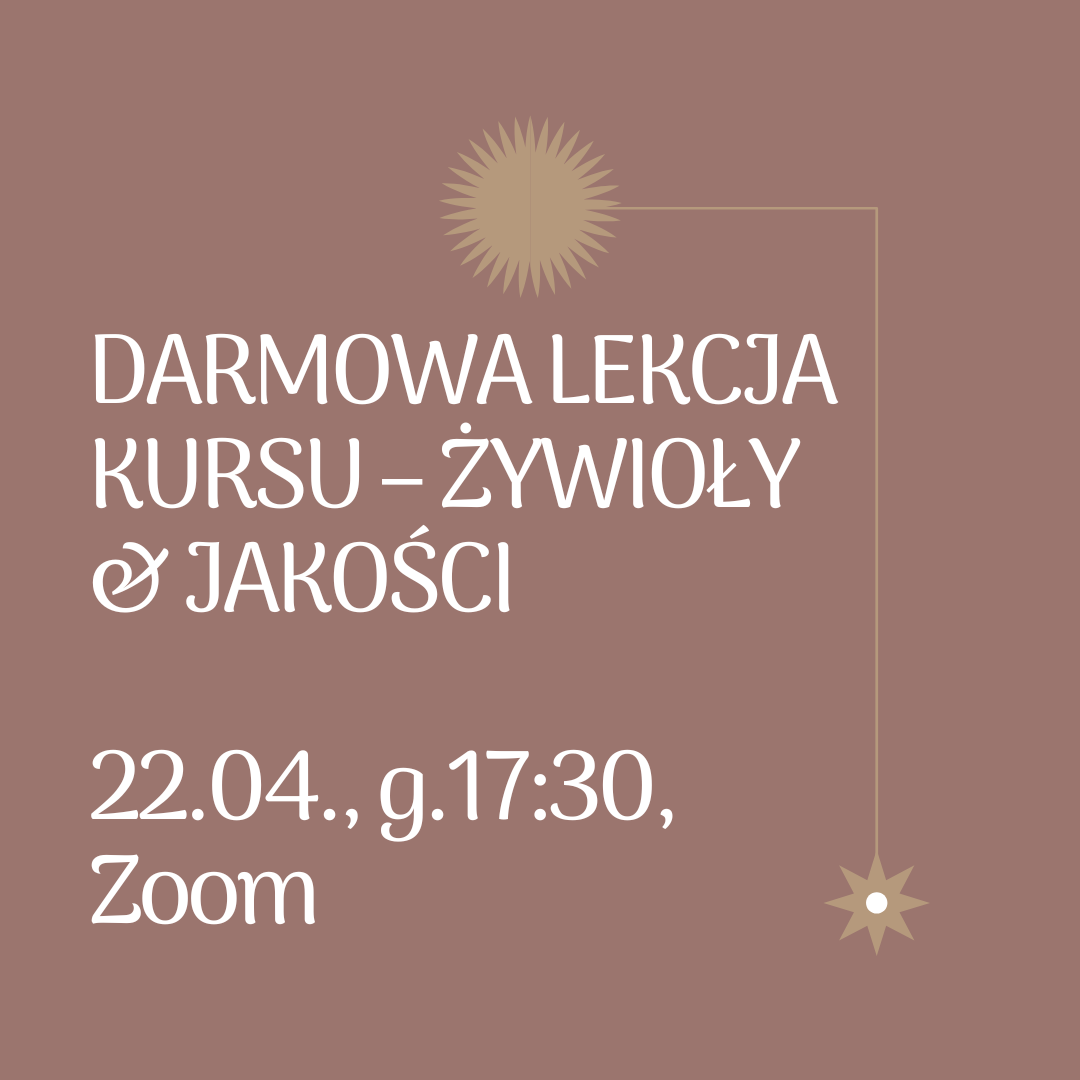 To pełnoprawna lekcja kursu – potrwa ok.3h i będziemy mówić na niej o żywiołach i jakościach.